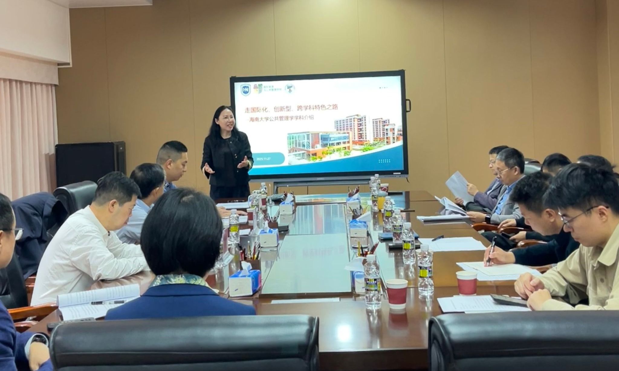 学院执行院长、公共管理学科责任教授徐艳晴做公共管理学科发展专项汇报,系统介绍了海南大学公共管理学科的发展历程、学科定位与建设成效。与会专家围绕公共管理学科的建设路径、学科融合、博士点发展及高层次人才培养等方面,从学科方向凝练、有组织科研、师资队伍建设等方面提出了多项建设性意见。自由交流环节,与会人员共同围绕公共管理学科建设的核心问题进行了深入交流与研讨。