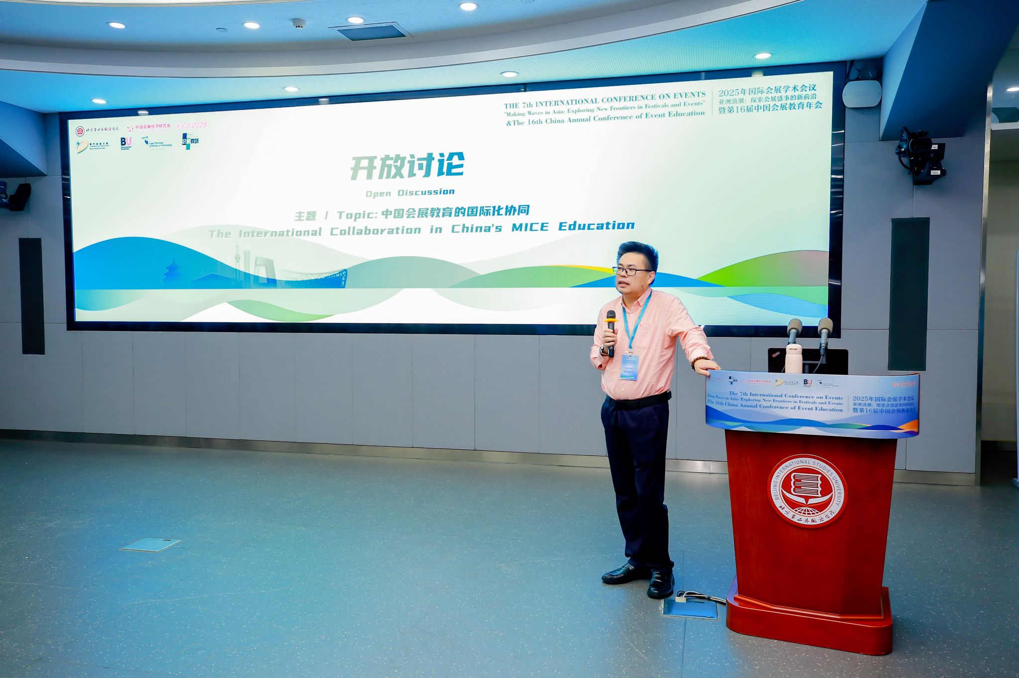 会议采用主旨演讲、专题研讨及产学研对接等多种形式展开,为中外会展教育者、研究者与行业领袖搭建了高质量的交流平台。我院中爱国际合作办学项目会展经济与管理(中外合作办学)专业责任教授耿松涛,应大会组委会邀请参会,并于9月18日主持第16届中国会展教育年会“中国会展教育的国际化协同”开放式讨论环节,同时作题为“中国会展教育发展历程、体系构建及国际化人才培养”的主题发言。
