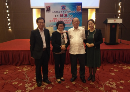5月7日上午,马来西亚海南会馆联合会丹斯里陈群川经济讲座在吉隆坡瑞园酒店隆重举行,拿督林秋雅总会长、丹斯里陈群川以及120余位海南乡贤出席会议,代表团应邀参会。陈扬乐副院长在会上详细介绍了MTA项目,并对此前海南大学推出的留学生奖学金项目的内容做了进一步宣传。对此,相关媒体进行了报道。