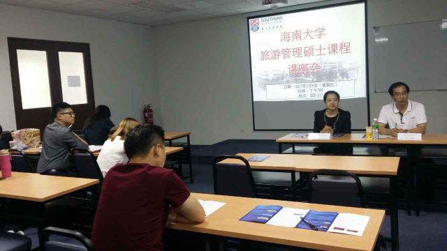 5月5日晚上7点至8点半,代表团在南方大学学院举办海南大学MTA项目专题讲座会。参加该推介会的潜在学员有20多人,专业与推广教育学部兼旅游与酒店学部陈秀林主任等全程参与。