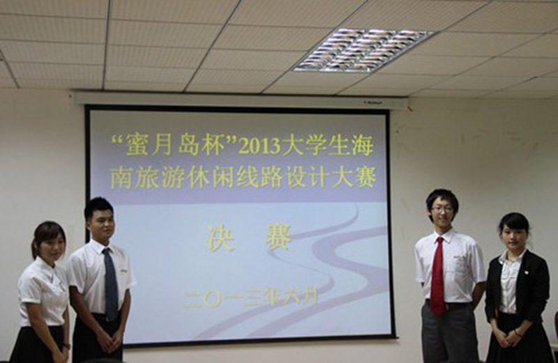 由海南省旅游发展委员会、海南省旅游协会主办的“我的休闲,我做主”——“蜜月岛杯”2013大学生海南旅游休闲线路设计大赛自5月10日召开新闻发布会至6月23日决赛结束,历时约为一个半月。在这段时间中,海南大学旅游学院的老师和同学们,给予高度重视并积极参与其中。